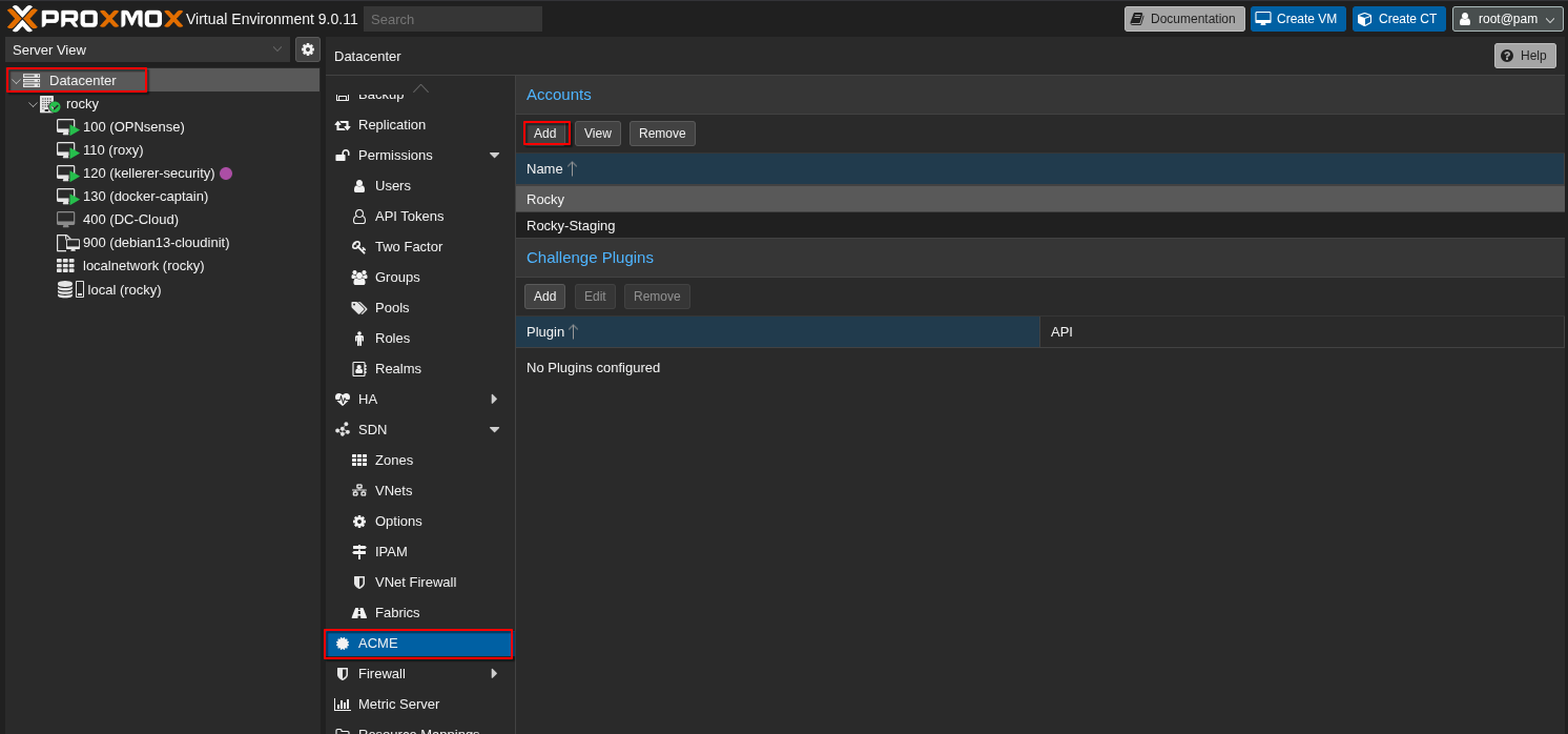 Zuerst erstellen wir einen ACME Account über die GUI: