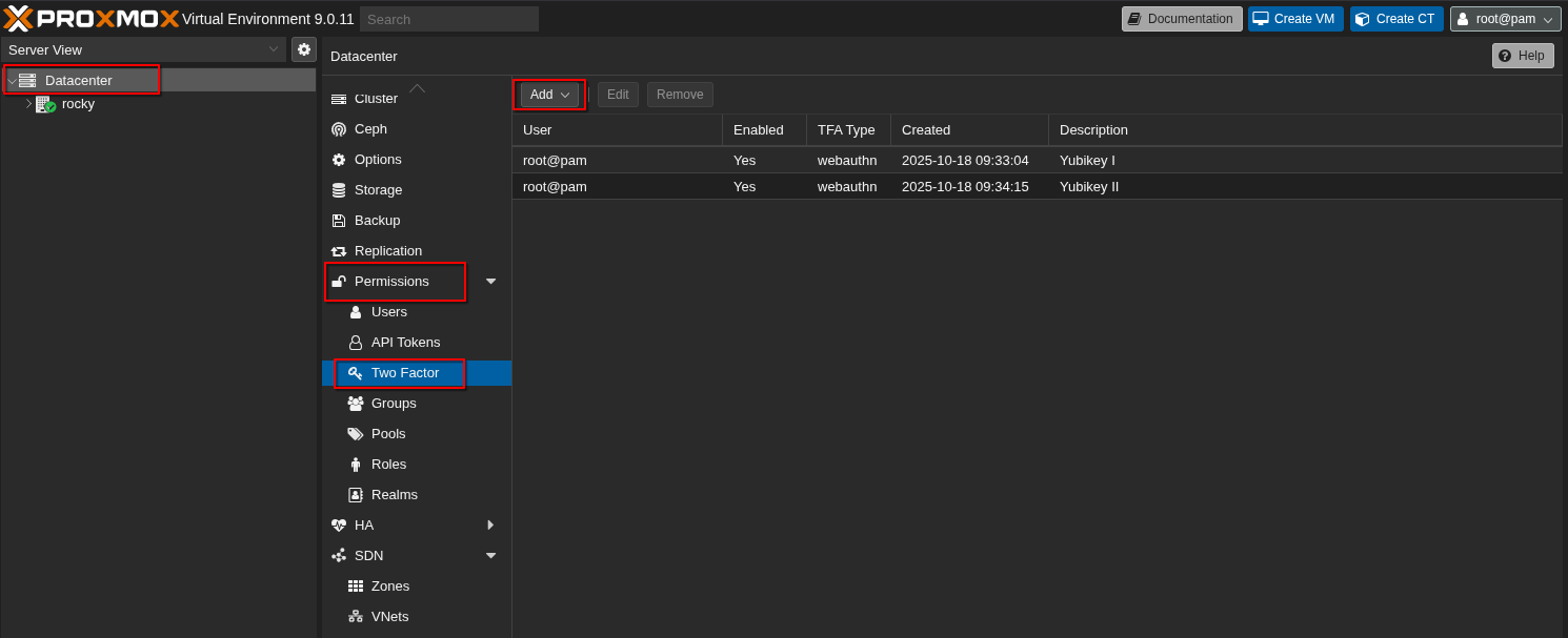 Die Option hierfür findet sich unter Datacenter > Permissions > Two Factors.